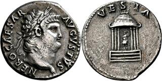 Denier (ar) (18mm-3.2g) Buste lauré / Temple de Vesta (n°208)