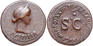 Dupondius (br)(orich.) (28mm - c.14g) (Rome) Ici un buste de IUSTITIA (la Justice, sous les traits de Livia épouse de l'empereur). (n°195)