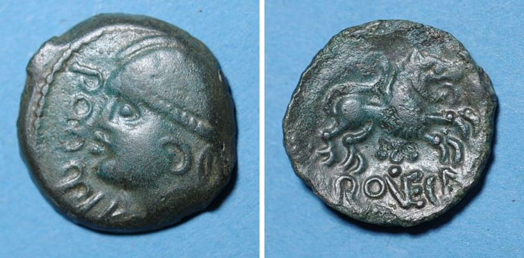 | ROME-REP- Denier(ar)(82av.)(18mm-4g) Jupiter/Victoire F | ENGLAND(Celtic)-Durotriges- Statère(or)(65av.)(20mm-6g) |