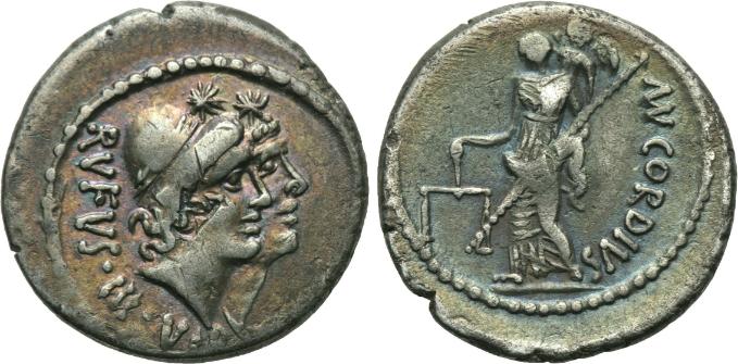 | ROME-REP-Rufus-Denier(ar)(46av)(19mm-3.6g) | ASIE MINEURE-Antoine/Cléopâtre-Denier(ar)(32av)(18mm-3.7g) |