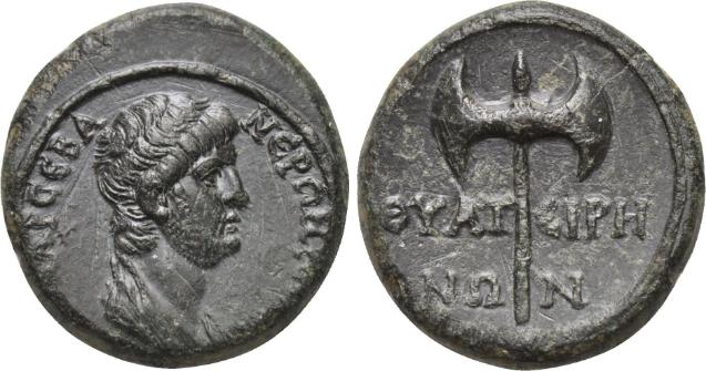 | ROME-Néron(54-68)- Auréus(or)(64)(20mm-7.35g) | LYDIE-Thyateira(/Néron)- Bronze(br)(c.60ap)(17mm-3.1g) |
