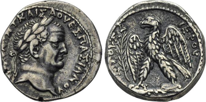 | EMP.ROM.(EGY)-Alexandrie(/Néron)(54-68)-Tétradrachme(bi)(23mm-13g) | SYRIE-Antioche (/Vespasien)- Tétradrachme(ar)(c.75)(25mm-15g) |