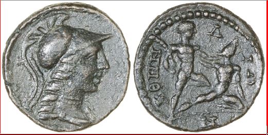 | GRECE -Athènes-Drachme(br)(c.270)(23mm-5.7g) | PAMPHYLIE -Sidé(/Valentinien)(253-60)-Assaria(br)(c.255)(31mm-18.6g) |