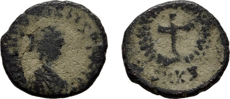 | ROME-ThéodoseII(402-450)-Nummus(br)(9mm-0.8g) | ROME-Arcadius(383-408)-Maïorina(br)(Cyzique)(c.406)(20mm-4.4g) |