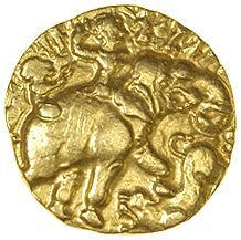 | AXUM(Roy.)-Ebana(5ès.)-Trémisse(or)(c.425)(17mm-1.5g) | KUSHANS(Roy.)-Kumaraguptal(5ès.)-Statère(or)(c.435)(21mm-8g) |