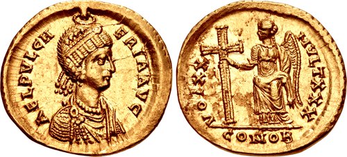 | ROME-Aelia Pulcheria(414-453)-Solidus(or)(Constantin.)(423)(21mm-4.3g) | ROME-Aelia Eudoxia(414-453)-Solidus(or)(Constantin.)(401)(21mm-4.4g) |