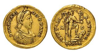 | ROME-Aelia Pulcheria(414-453)-Trémisse(or)(Constantin.)(c.425)(18mm-1.4g) | ROME-Arcadius(383-408)-Solidus(or)(Milan)(c.405)(20mm-4.5g) |