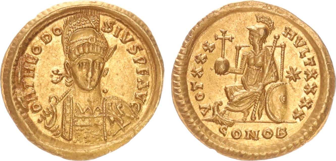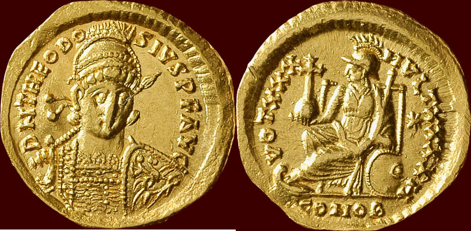 | ROME-ThéodoseII(402-450)-Solidus(or)(c.415)(20mm-4.45g) | ROME-ThéodoseII(402-450)-Solidus(or)(Constant.)(c.430)(20mm-4.4g) |