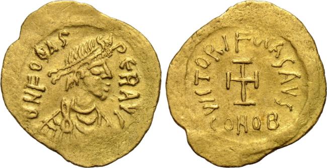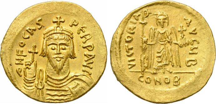 | EMP.BYZ.-Héraclius(610-641)-Solidus(or)(638)(19mm-4g) | EMP.BYZ.-Focas(602-610)-Solidus(or)(21mm-4.5g) |
