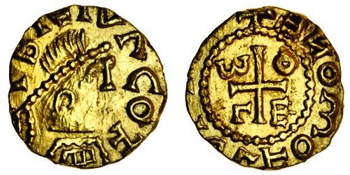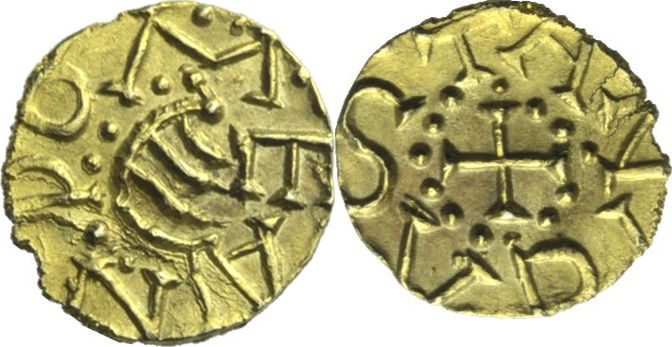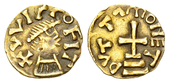 | MEROVINGIENS- Brive(c.590-670)-Trémisse(or)(17mm-1.2g) | MEROVINGIENS- Leandomanus-Trémisse(or)(c.630)(17mm-1.1g) |