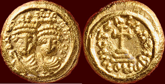 | MEROVING.-Quentovic-Trémisse(or)(c.620)(11mm-1.2g) | EMP.BYZ.-Héraclius(610-41)-Solidus(or)(Carthage)(c.625)(11mm-4.4g) |