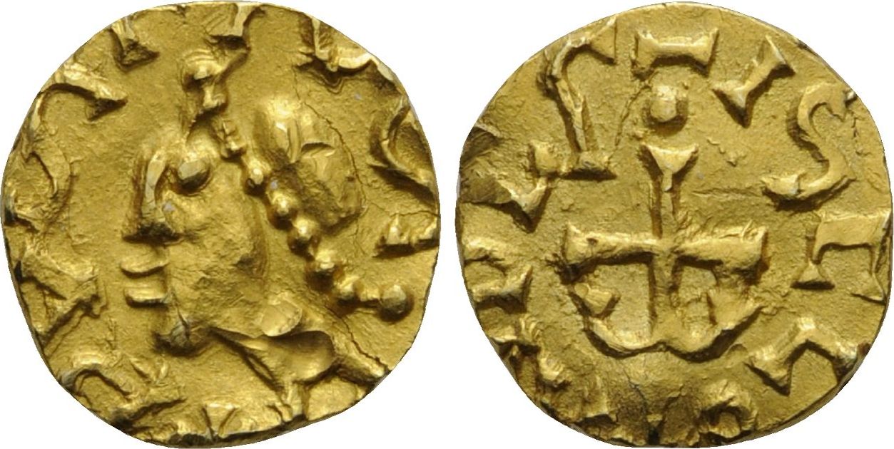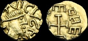 | MEROVINGIENS- Brive(c.590-670)-Trémisse(or)(17mm-1.2g) | MEROVINGIENS- Leandomanus-Trémisse(or)(c.630)(17mm-1.1g) |