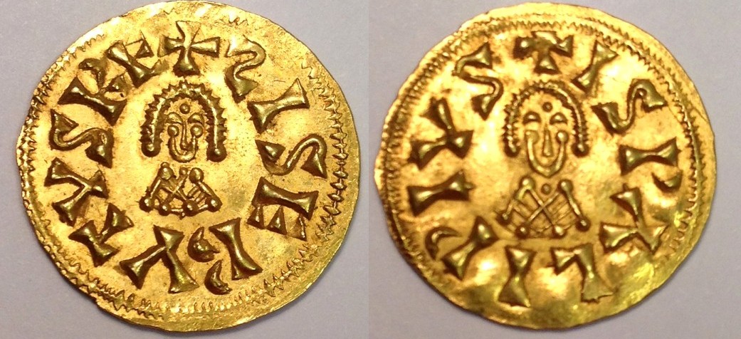 | MEROVING.-Quentovic(620-640)-Trémisse(or)(c.630)(14mm-1.14g) | MEROVING.-Paris-Trémisse(or)(c.625)(12mm-1.2g) |
