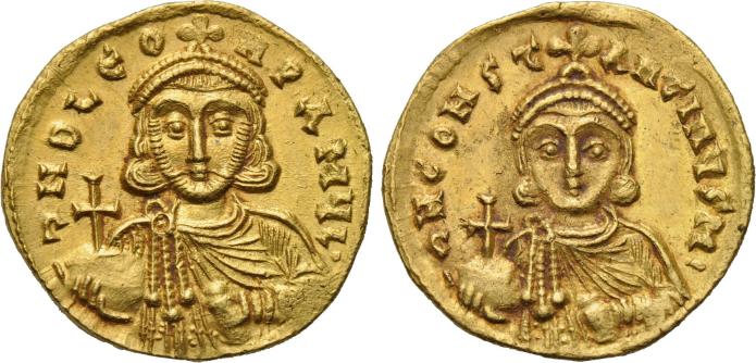 | OMEYADES(Damas)-SuleymanI(715-717)-Dirhem(ar)(25mm-3g) F | BYZANTIN-LeoIII(717-741)-Solidus(or)(21mm-4.5g) |
