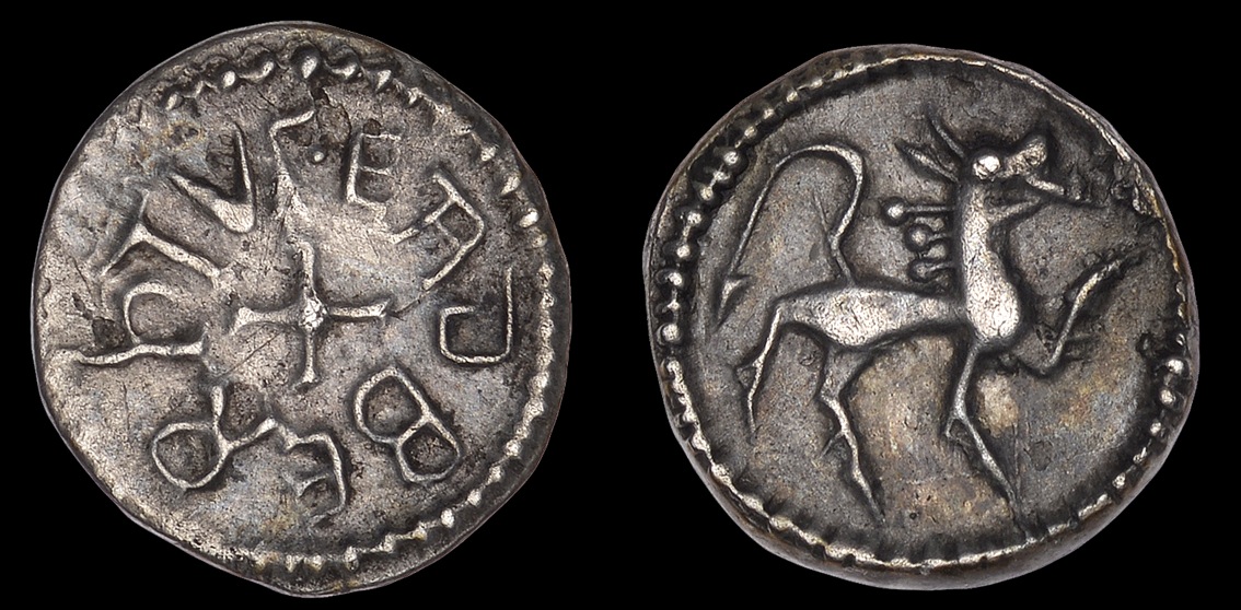 | ITALIE-Bénévent(Duché)(732-739)-Solidus(el)(21mm-4g) | ANGLO-SAXONS-(710-725)-Sceat(ar)(19mm-1.3g) |