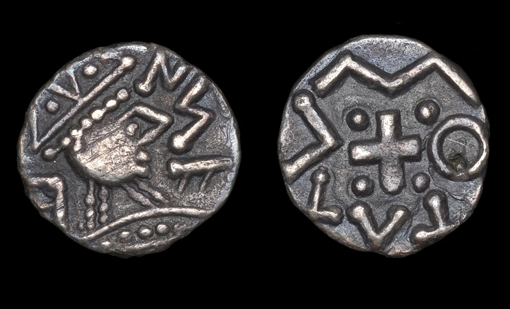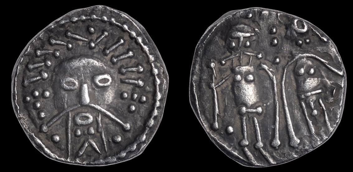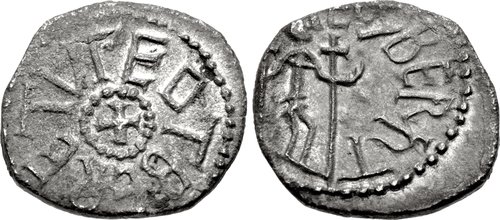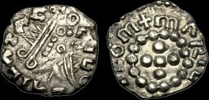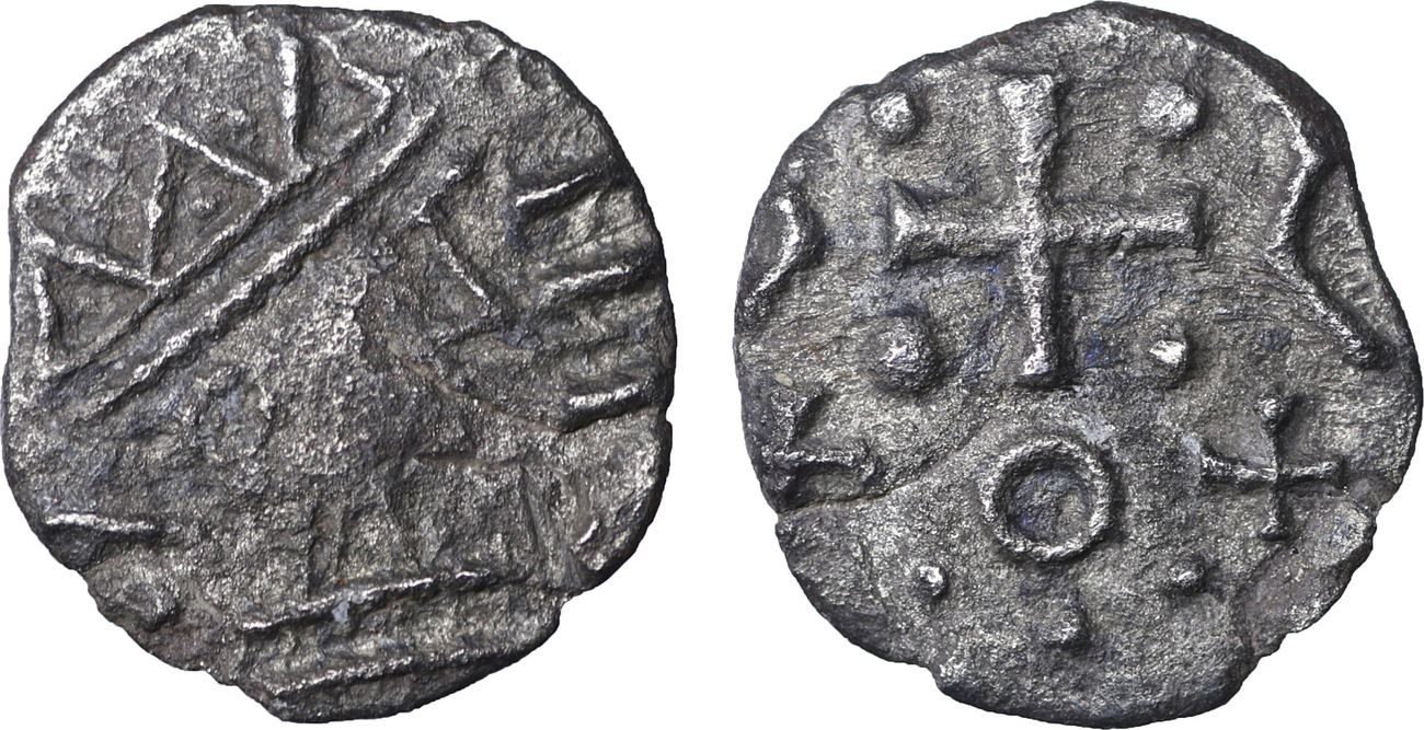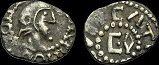| MEROVINGIENS-Denier(ar)(c.720)(15mm-1.2g) | ANGLO-SAXONS-Sceat(ar)(c.720)(12mm-0.9g) |
