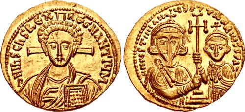 | OMEYADES(Damas)-SuleymanI(715-717)-Dirhem(ar)(25mm-3g) F | BYZANTIN-LeoIII(717-741)-Solidus(or)(21mm-4.5g) |