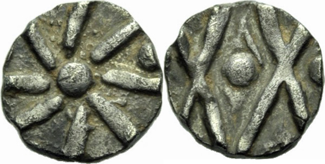 | JUDEE(/Omeyades)-Fals(cu)(c.725) | ANGLO-SAXONS-(700-725)-Sceat(ar)(12mm-1.13g) |