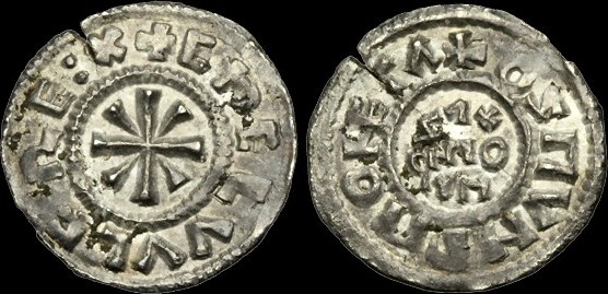 | ANGLO-SAXONS(Kent)-Cuthred(798-807)-Penny(ar)(20mm-1,4g) | CAROLINGIENS-Louis le Pieux(814-840)-Denier(ar)(20mm-1,5g) |