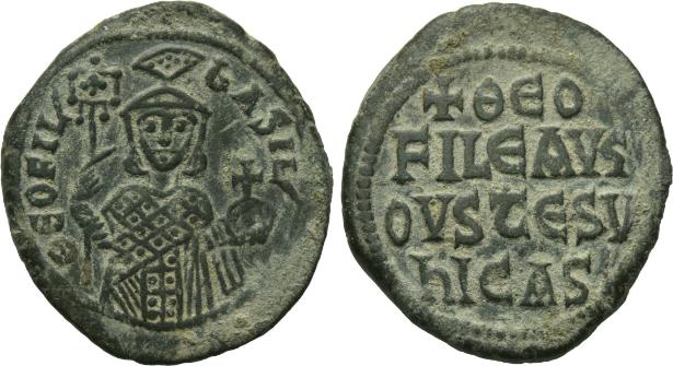 | EMP.BYZ.-Théophile(829-842)-Solidus(or)(18mm-4.2g) F | EMP.BYZ.-Théophile(829-842)-Follis(br)(30mm-10g) |