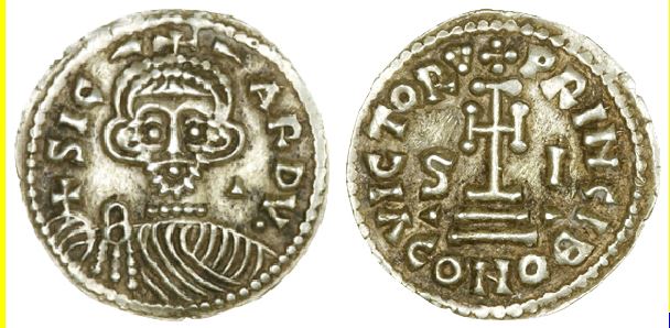 | ITALIE-Bénévent(Duché)Sicard(832-39)-Solidus(or)(23mm-3.9g) | ANGLO-SAXONS(Northumb.)-AetelredII(843-849)-Styca(cu)(12mm-1g) |