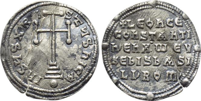 | CAROLINGIENS-Charles le Ch.(843-877)-Denier(ar)(Melle)(20mm-1.5g) | EMP.BYZ.-LeoVI(886-912)-Miliarésion(ar)(c.890)(23mm-2.2g) |