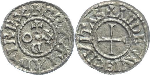 | ANGLO-SAXONS-Alfred the Great(871-899)-Penny(ar)(London)(19mm-1.6g) | CAROLINGIENS-Charles le Chauve(843-877)-Denier(ar)(Paris)(21mm-1.6g) |
