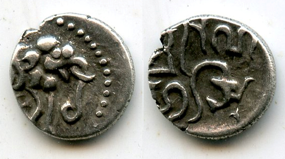 | INDO-SASSAN. -Pratharas -Dramma(ar)(c.860)(15mm-3.9g) | INDE-RAJASTHAN -Chaulukia -Damma(ar)(c.890)(9mm-0.56g) |