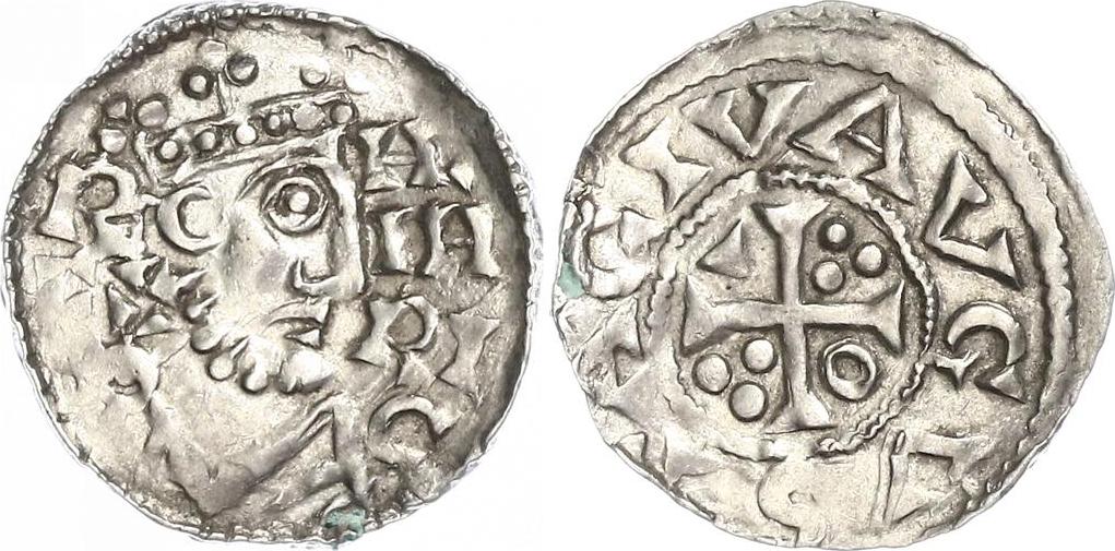 ANGLO-SAXONS-Cnut(1016-35)-Penny(ar)(c.1025)(19mm-1.0g)  FRANCE-Chartres(Comté)-Obole(ar)(c.1025)(17mm-0.5g)