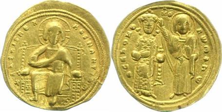 EMP.BYZ.-ConstantIX(1042-1055)-Histaménon(or)(28mm-4.4g) ANGLO-SAXONS-Cnut(1016-35)--Penny(ar)(c.1020)(19mm-1.1g)