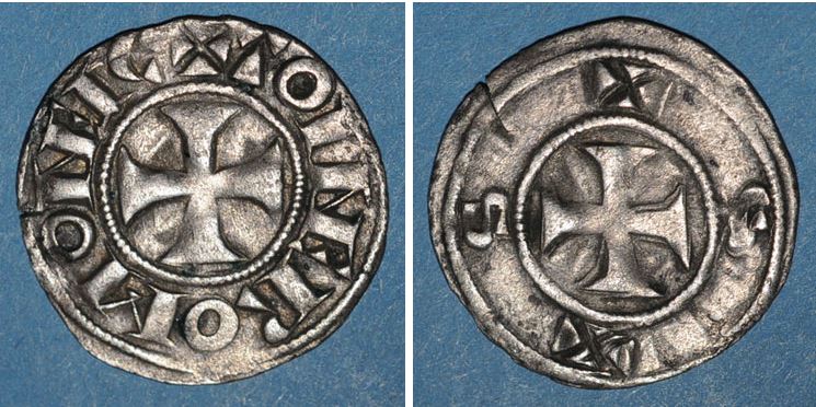 | FRANCE(Champagne)-Denier(ar)(1125)(18mm-1g) | JERUSALEM(Royaume Croisés)-Besant(or)(1142-87)(23mm-4g) F |