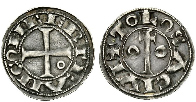 | SAVOIE(comté)-AmédéeIII-Denier(ar)(c.1125)(18mm-1.1g) | FRANCE-Toulouse(Comté)-Bertrand-Denier(ar)(c.1108)(18mm-1.1g) |