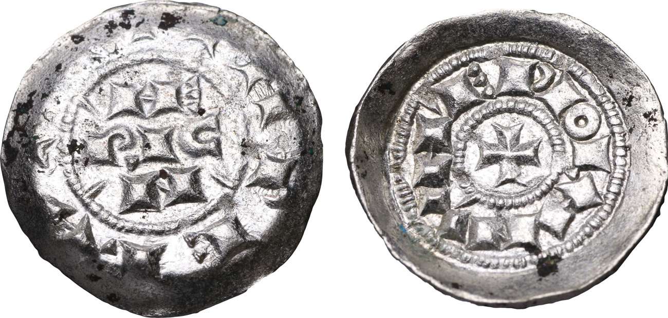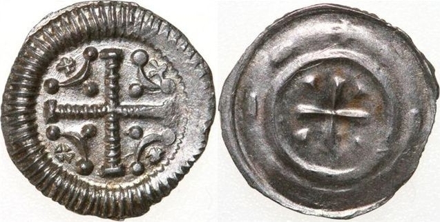 | ALLEM.-Brandeb.-Preuss-Denar(ar)(c.1135)(17mm- 0.8g) | ITALIE-Milan(impér.)-Denaro scodellato(ar)(c.1105)(16mm-0.7g ) |
