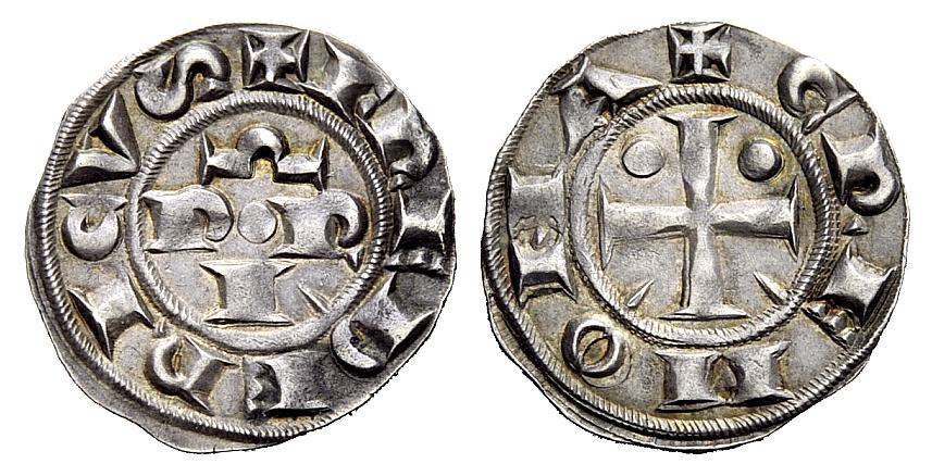 | SICILE(Normands)-Trifollaro(br)(1166)(23mm-7g) Lion/Palmier F | ANTIOCHE(Croisés)-Principauté-Denier(ar)(1149-63)(18mm-1g) |