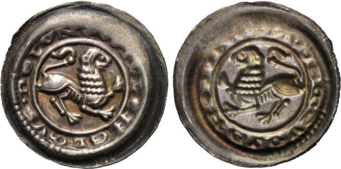 | ALLEM.-Regensburg(Duché)-OthonII-Pfennig(ar)(c.1240)(20mm-0.9g) | ALLEM.(Brunswick)-Wilhelm(1195-1213).-Bractéate(ar)(c.1205)(22mm-0.8g) |