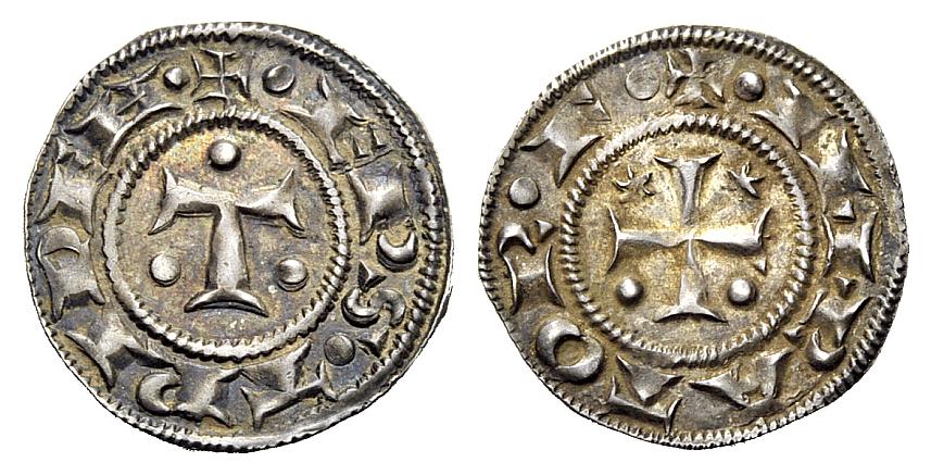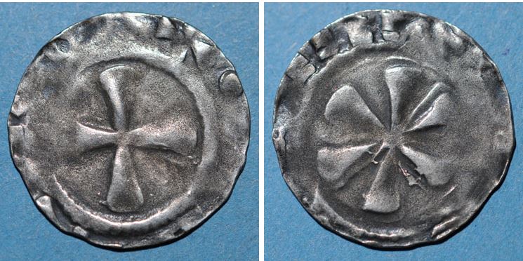 | ITALIE-Bergame(Rep.)-Grosso(ar)(1245)(20mm-1.3g) | FRANCE-Limousin-Abb. St-Martial-Denier(barbarin)(ar)(c.1220)(18mm-1g) |