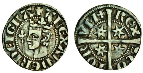 | SCOTLAND-Alexander III-Penny(ar)(c.1280)(19mm-1.3g) | ACHAIE-(Princip. franque)-G.Villehardouin-Denier(ar)(c.1275)(-18mm-0,85g) |