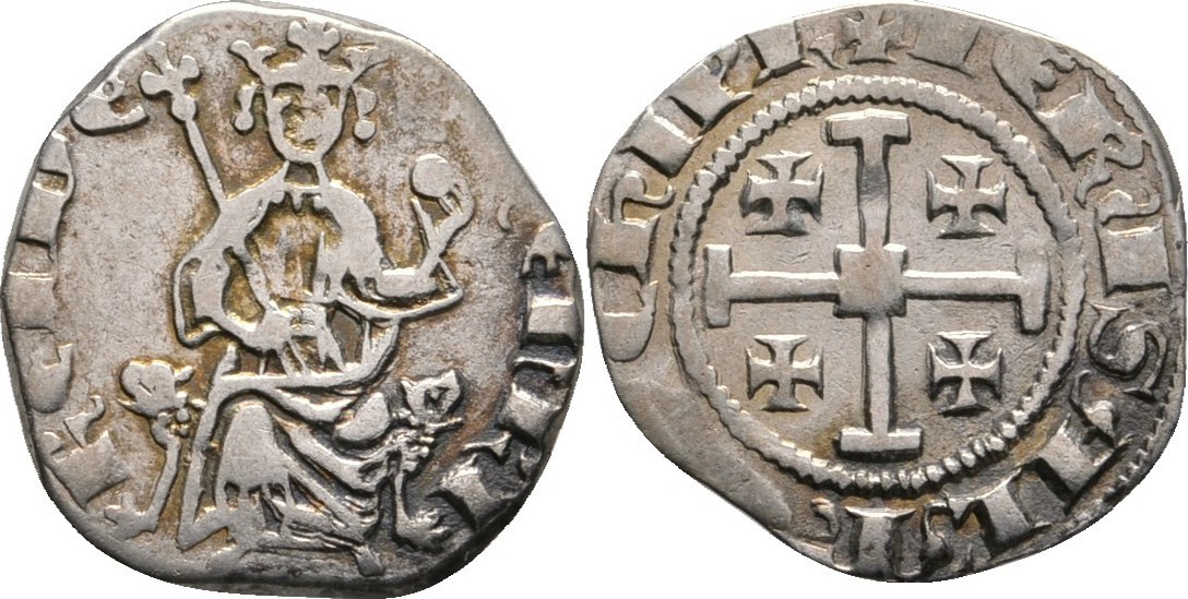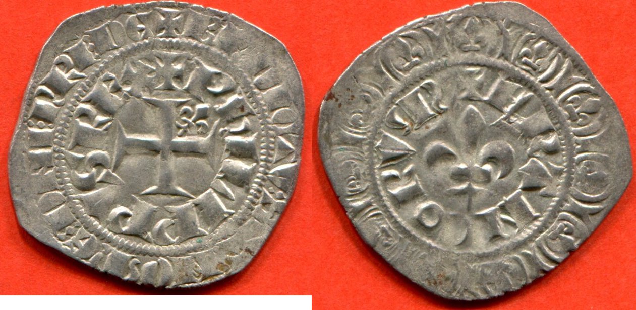 CHYPRE-(Croisés) -Gros(ar)(c.1320)(21mm-2.3g)      FRANCE-PhilippeVI(1328-50)(-Gros à la fleur de lys(ar)(1341)(25mm-2.8g)