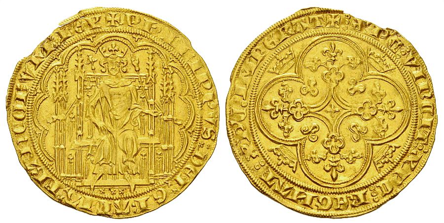 ITALIE-Villa di Chiesa (/Giac.II d'Arag.)-Alfonsino(ar)(c.1325)(23mm-3.2g)      FRANCE-PhilippeVI(1328-50)(-Chaise d'or(or)(1346)(31mm-4.7g)