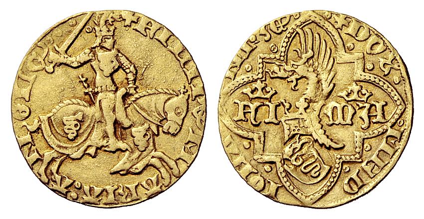 ENGLAND-HenryV(1413-1422)-Noble d'or(or)(35mm-7g) ITALIE-Milan(Duché)-F.M.Visconti(1412-1447)-Ducato(or)(24mm-3.5g)