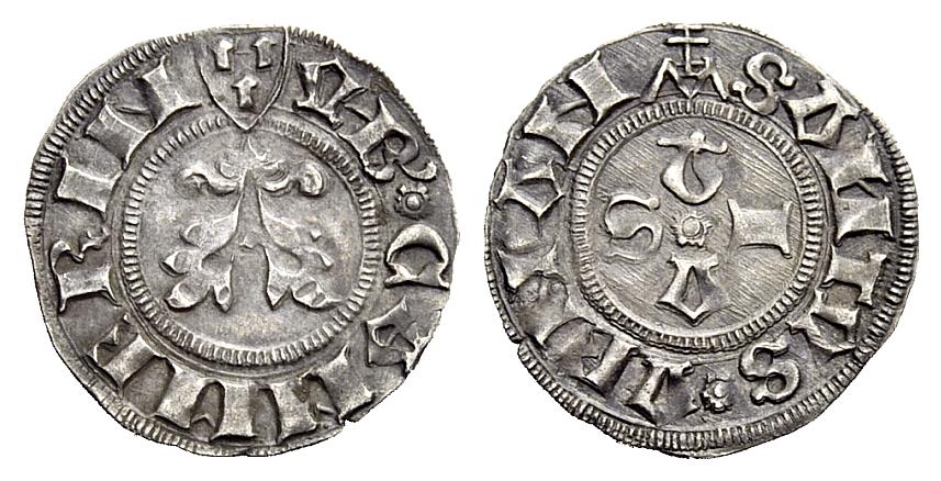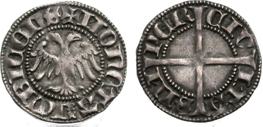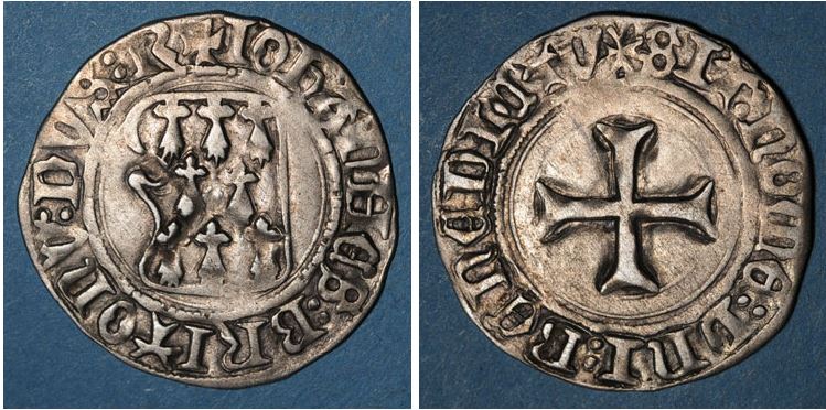 ITALIE-Camerino(Gov.Popol.)-(1434-44)-Grosso(ar)(c.1440)(21mm-1.6g) BRETAGNE(Duché)-Jean V(1399-42)-Blanc à la targe(ar)Rennes)(23mm-2.9g)