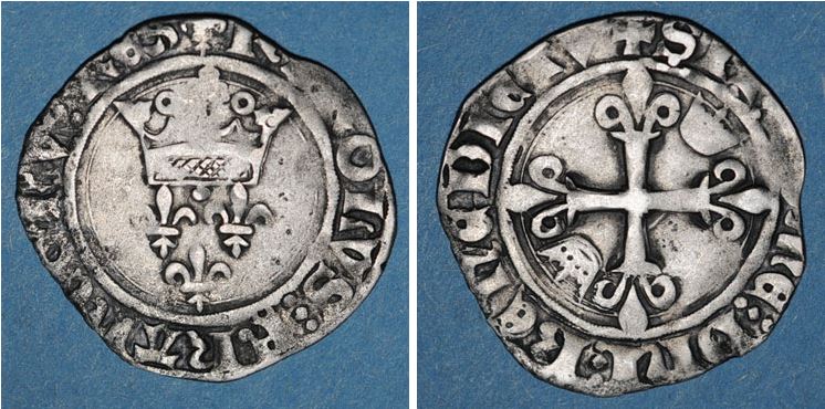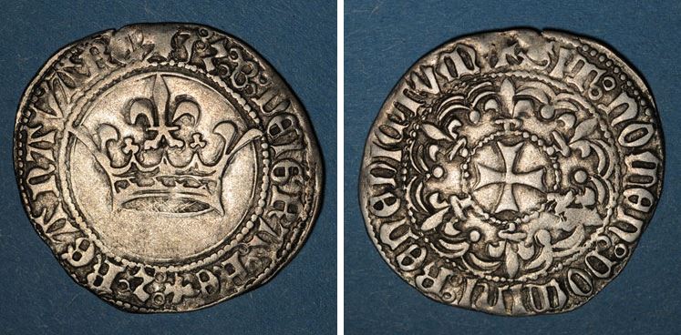 FRANCE-CharlesVI(1380-1422)-Florette(ar)(1417)(27mm-3g) NAVARRE(Roy.)-Jean d'Arag.(1425-41)-Gros(ar)(c.1430)(24mm-2.9g)