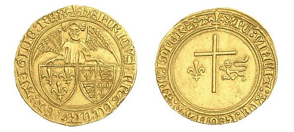 ENGLAND-HenryV(1413-1422)-Noble d'or(or)(35mm-7g) ITALIE-Milan(Duché)-F.M.Visconti(1412-1447)-Ducato(or)(24mm-3.5g)