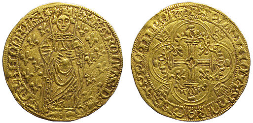 FRANCE-CharlesVII(1422-1461)-Royal d'or(or)(1429)(30mm-3.8g) ALLEMAGNE-Freiburg in Br.-Rappen(brakteat)(ar)(c.1420)(18mm-0.3g)