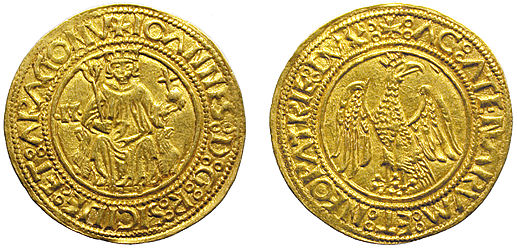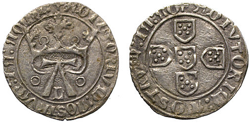PORTUGAL-AlphonseV-(1438-81)-Chinfrao(ar)(c.1460)(16mm-1g)    SICILE(Roy.)-JeanII(1452-79)-Réal d'or(or)(Messine)(c.1460)(23mm-3.95g)