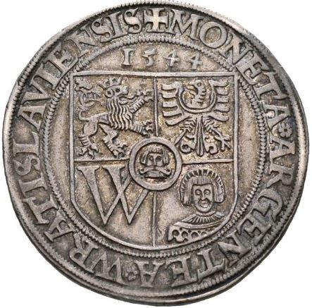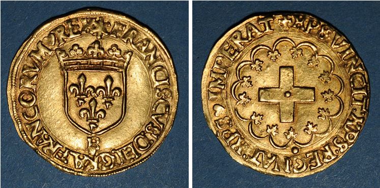 ALLEMAGNE(Breslau)Thaler(ar)(1544)(41mm-29g)         FRANCE-François Ier-Ecu  à la croisette(or)(1541)(28mm-3.5g)