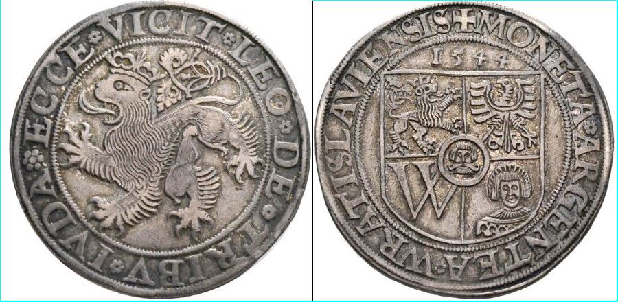 ALLEMAGNE(Breslau)Thaler(ar)(1544)(41mm-29g)         FRANCE-François Ier-Ecu  à la croisette(or)(1541)(28mm-3.5g)