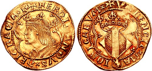 ESPAGNE-(Castille/Léon)-FernandoV-Ducado(or)(c.1512)(22mm-3.5g)           ALLEMAGNE-Brême(Archev.)4-grote(ar)(1512)()