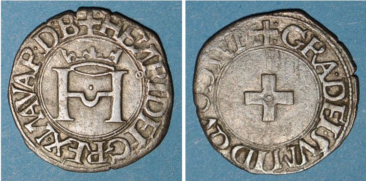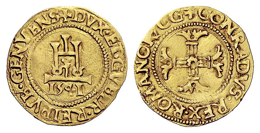 ITALIE-Genova-Scudo(or)(1541)(22mm-3.3g)    FRANCE-Béarn(seigneurie)-Henri 1er-Liard  à la croisette(ar)(c.1530)