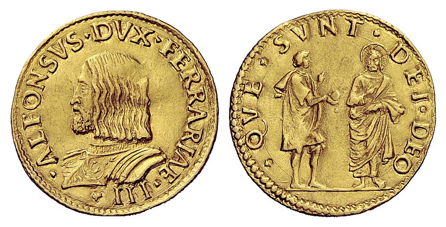 ITALIE-Ferrare(Alfonso d'Este)-Doppio Ducato(or)(c.1510)(30mm-7g)    ITALIE-Milan(/FrançoisIer)-Trillina(bi)(1515-6)(15mm-1.2g)